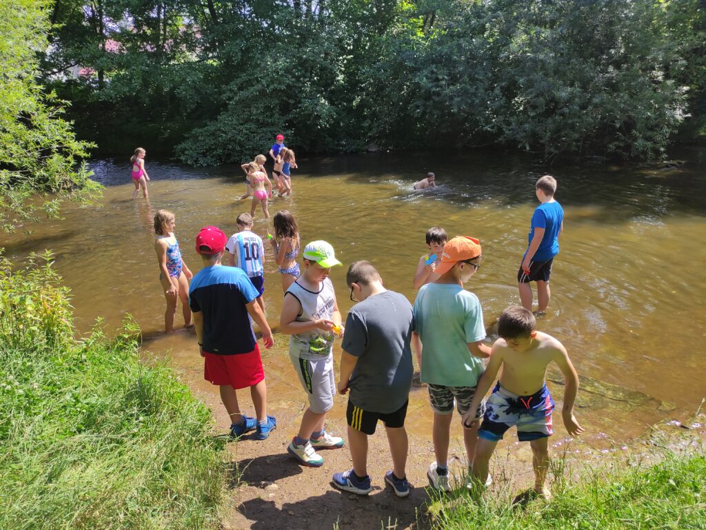 Ve středu 19.6. jsme se vydali na pěší výlet do Slatiňan. Žáci pátého ročníku již tradičně navštívili základní školu, do které většina z nich přechází na druhý stupeň. Paní sekretářka je provedla po budově, ukázala jim například počítačovou učebnu, hudební třídu a další prostory. Poté se přemístili do školní jídelny, kde jim paní vedoucí ukázala, kde se vydávají obědy, jak si mohou zařídit výběr jídla. Mladší děti mezitím strávily čas na hřišti, kde se věnovaly pohybovým aktivitám. Nechyběla ani návštěva cukrárny a na závěr jsme využili teplého počasí a strávili čas brouzdáním v řece Chrudimce.