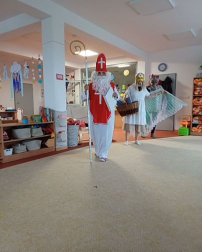 Na začátku měsíce k nám přišla vzácná návšteva – Mikuláš, anděl a čert. Některé děti měly z čerta trochu strach, ale když zjistily, že je hodný, přestaly se bát a ti odvážnější si s ním i zatancovaly. Mikuláš je obdaroval drobnými dárky, děti mu zazpívaly písničku nebo řekly básničku. Překvapením pro děti bylo taneční vystoupení – paní učitelka jako anděl se světelnými křídly.